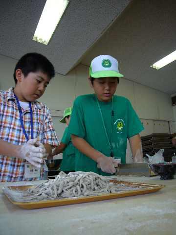 午前中は、初めてのそば打ち、枝豆を使ったじんだん団子、旬の野菜をトッピングしたピザづくり。