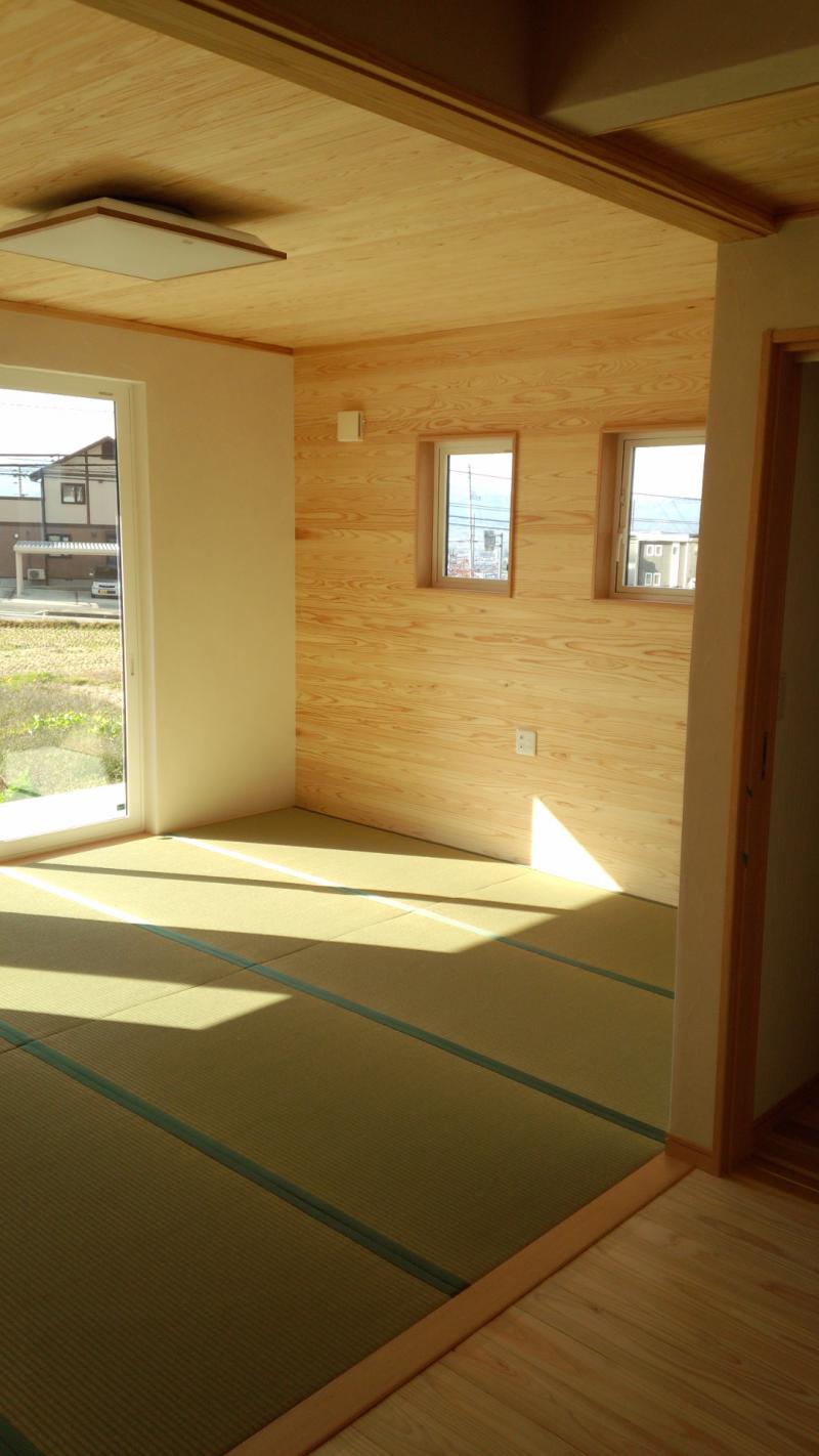 杉の無垢床の他にホール・リビングは畳敷きで開放的でお子様ものびのびと過ごせ
