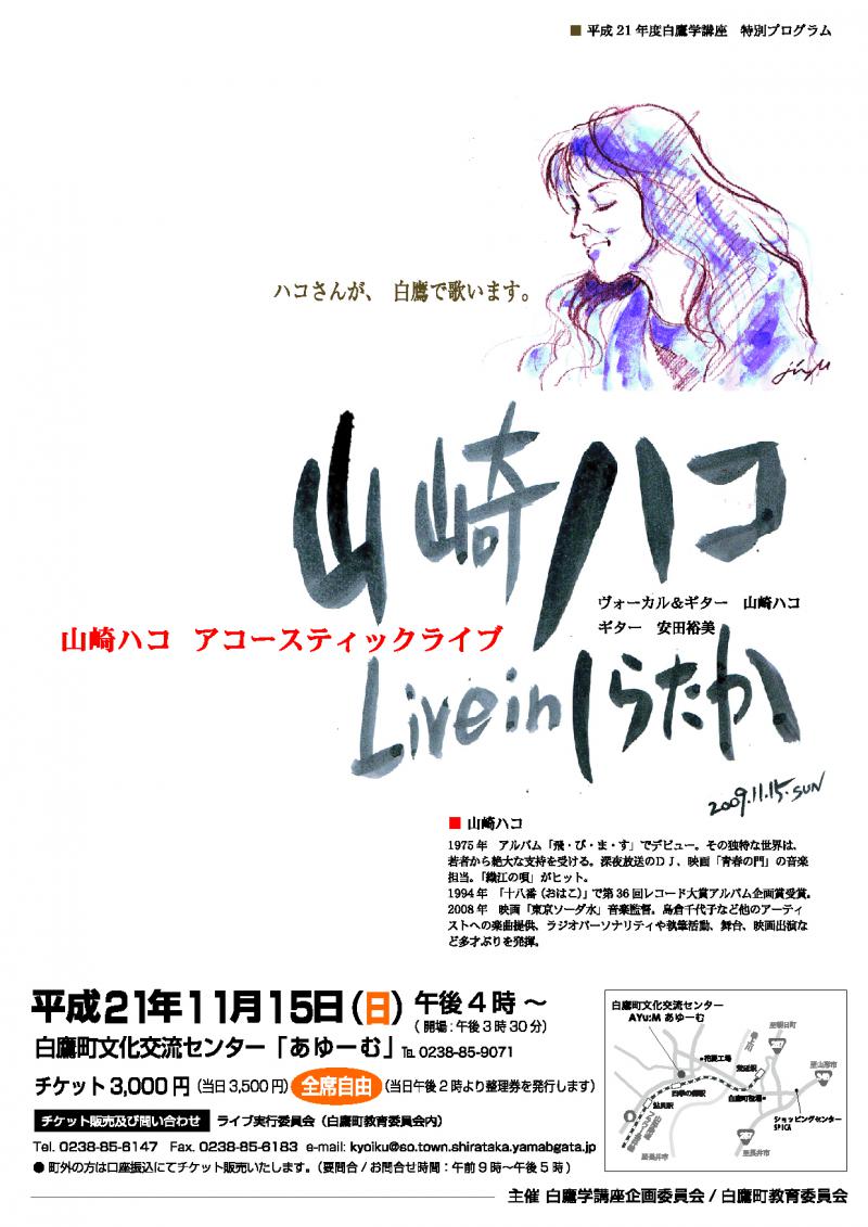 11月15日に白鷹町の「あゆーむ」で開催される『山崎ハコ アコースティックライブ』。まもなくに迫ってまいりました!!