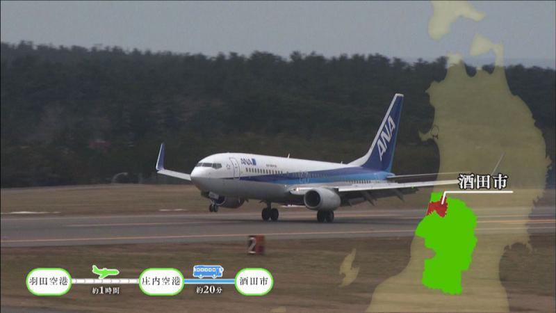 羽田空港から庄内空港まで1時間。そこからバスで20分ほどで酒田市です。