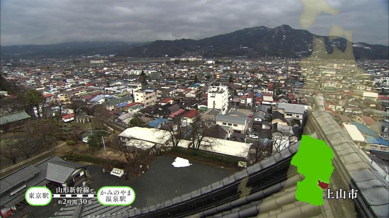 東京駅から山形新幹線でおよそ2時間30分。まずやってきたのは上山市。