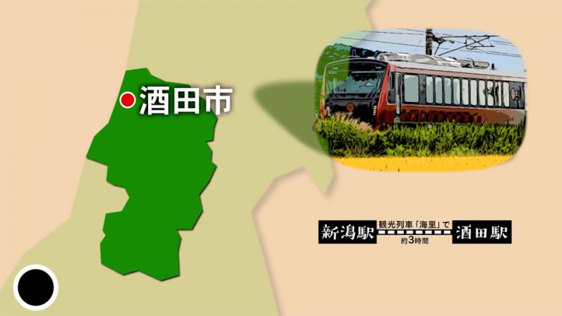 観光列車「海里」に乗って新潟から庄内地方の酒田市に到着した野々村さん。