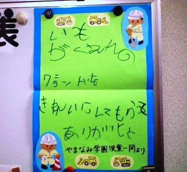 “いつもがくえんのグランドをきれいにしてくれてありがとう”と手書きのメッセージ付きです(^з^)-☆