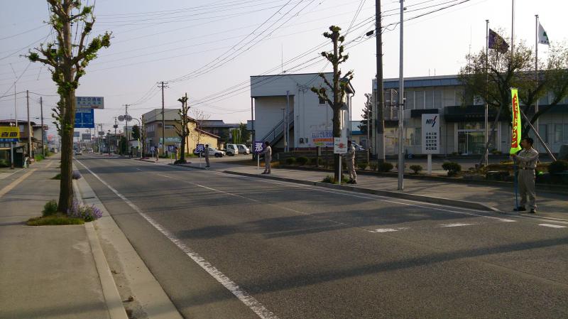 今朝、建築部で安全活動として立哨を行いました。