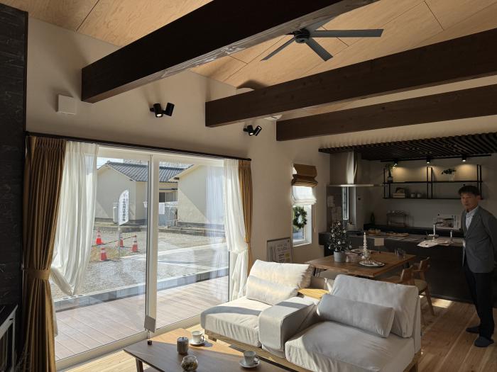 こちらは平屋の建物で勾配天井をLDに設けることで開放感を特徴にご提案しておりました。