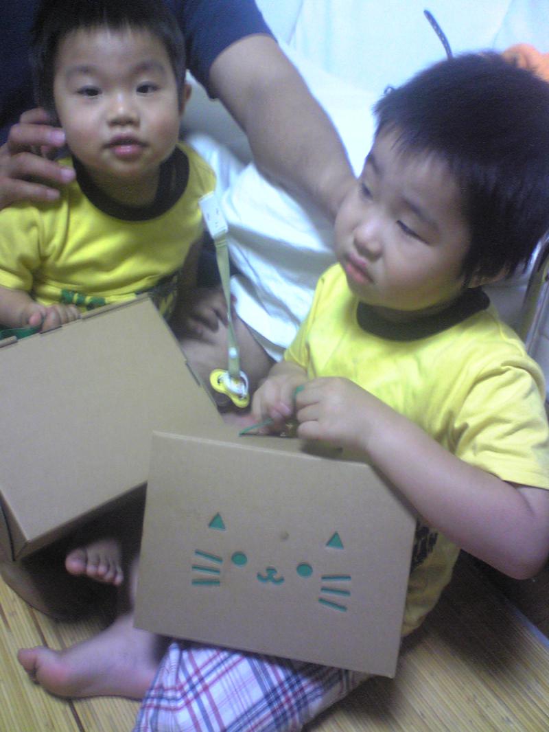 2人の孫が喜んで手にもって