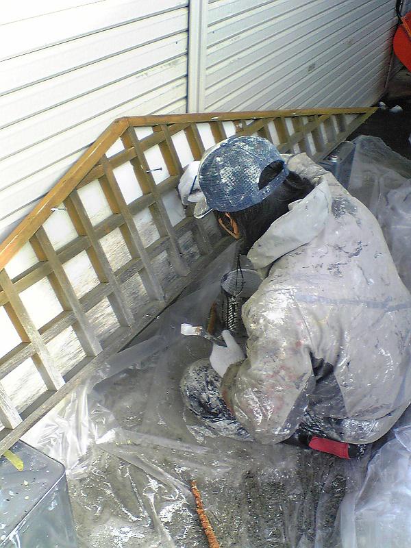 今の仕事は外壁吹付けの養生と妻換気をとりはずして