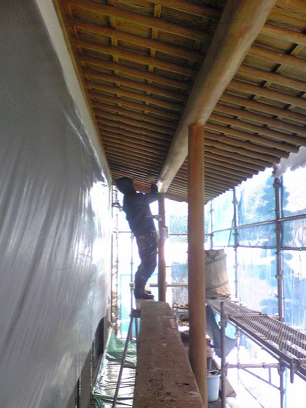外壁の吹付け工事もほぼ終わりで仕上げのチェックを確認し