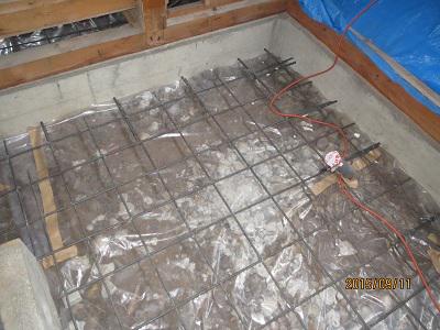 建物内部の土間に鉄筋を入れて