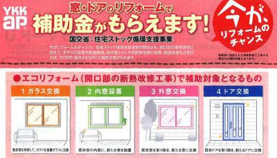 協力業者様より、エコリフォーム補助金の情報を頂きました。