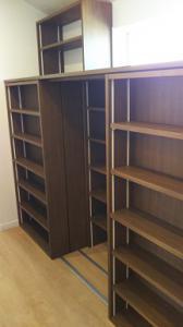書庫には手前2列が可動式の3列の本棚。