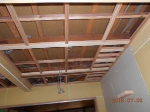 現在は壁、天井下地となる、石膏ボードを張っています。
