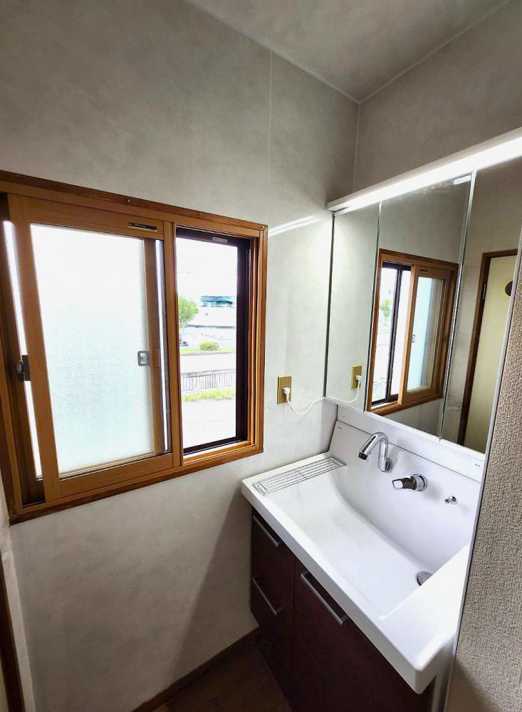 今回は 洗面台交換をするので周辺の壁にキッチンパネルを貼って汚れ防止もしました。