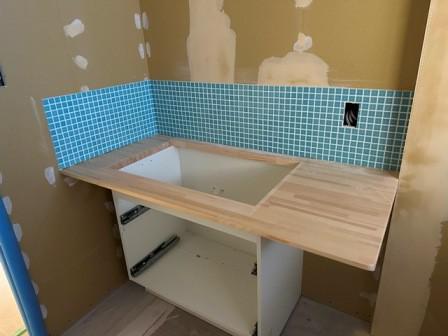 カガミ、収納、洗面ボウルを設置して完成になります。