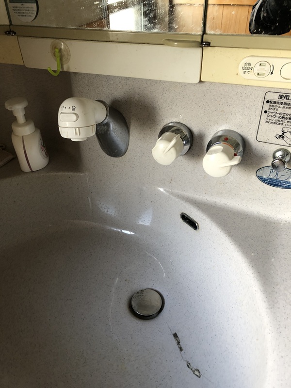 他社で新築時に設置した化粧台の洗面器部分に