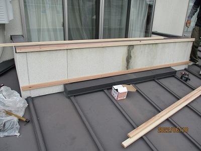 下地の上に金属製の外壁材を施工します。