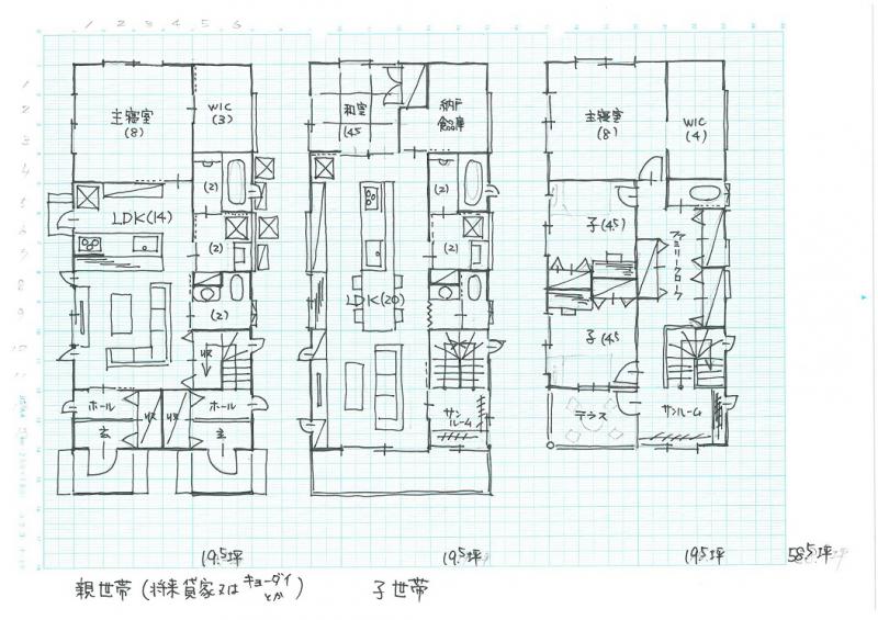 前回の狭小プランに引き続き、今回は2世帯住宅をプランしました。