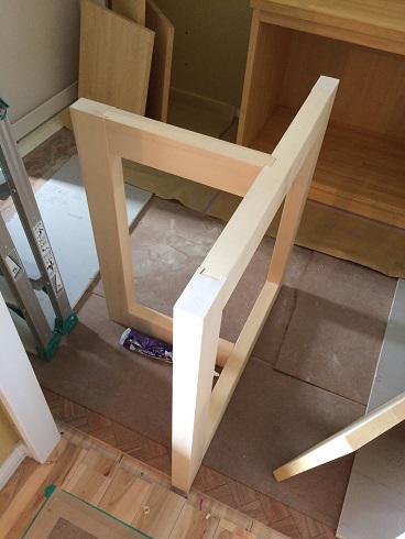 お引渡し間近の物件の造作テーブルの脚の写真です。
