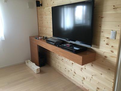 今回リビングの一面をクロスから板張りにしたいとのご要望と、壁掛けTV周辺の機器を
