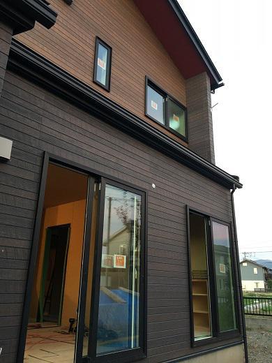 色違いの木目調の外壁材を使い、軒天のほうは朱色に塗装かけております。