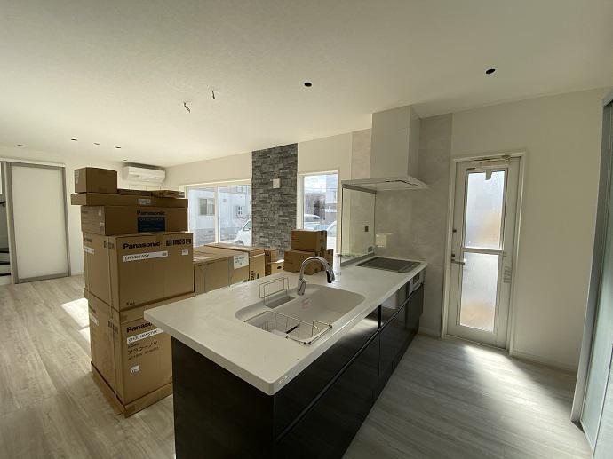 内装工事も完了して器具取付けをしている完成間近の現場です。