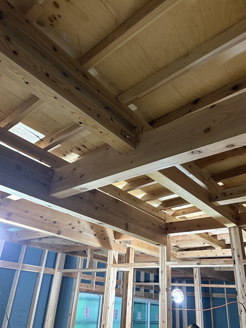 なっています。横架材(梁)は基本4m以内で継手を設け側面