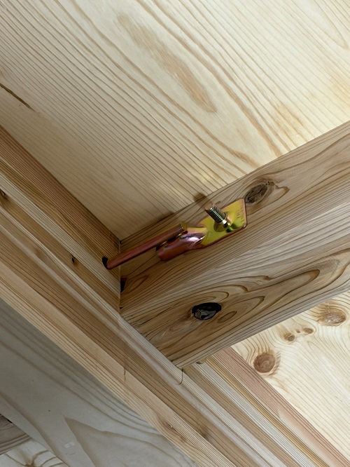 使用し材木継手を金物で結合しています。