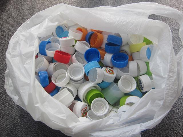 今日、袋に集めたキャップを山銀さんに渡しました。