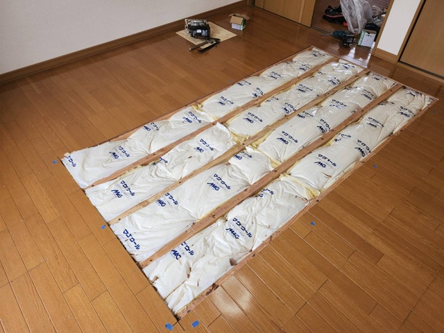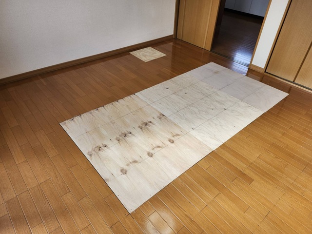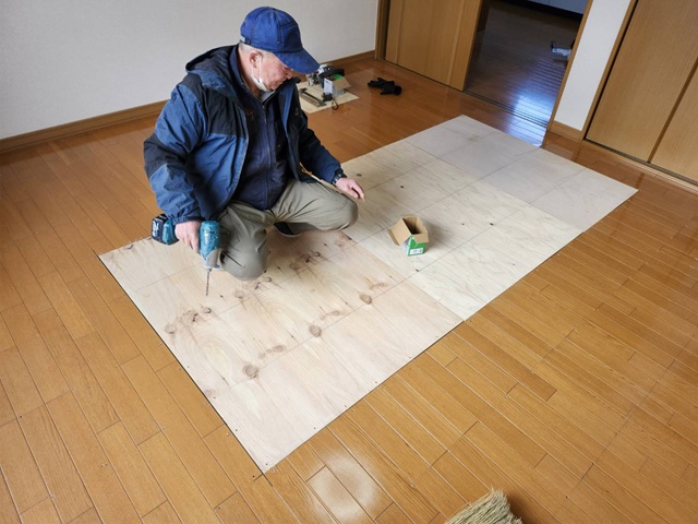 フロアの高さにベニヤ板をそろえました。