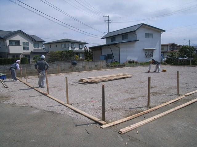 遣方・・・基礎工事を始める前に、杭や貫を使い、建物の柱や壁の基準、水平の基準を出す作業。