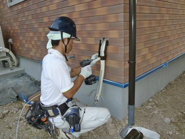 エアコン室外機の取付けをしています!