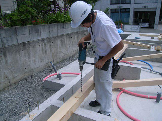 土台の下に基礎パッキンを敷いています。