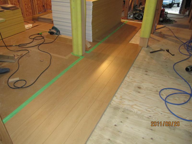 リビング床フローリング敷きがはじまっいます。