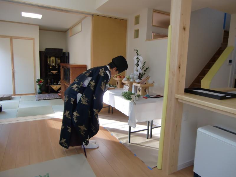 神の恵みと、水の神、火の神、産土の神、祖先の恩とに感謝し、建物が無事完成したことを報告、家屋がいつまでも安全堅固に、永遠に繁栄することを祈願します。