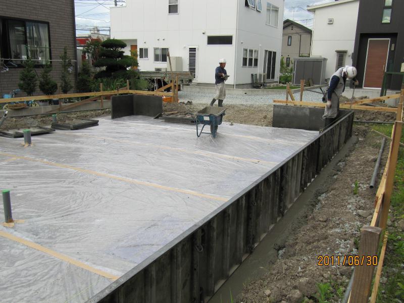 保証機構の検査が終わって、ベタ基礎コンクリート打設です。