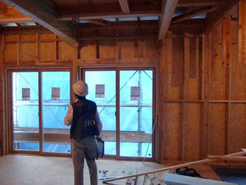 日本住宅保証検査機構の検査員さんが現場にて 金物・構造躯体等の
