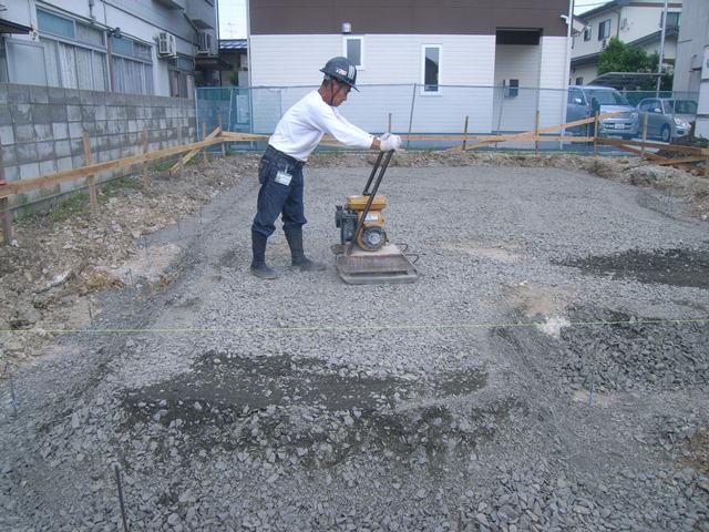 砕石を敷均し、転圧をかけています。