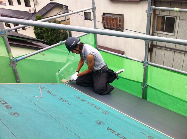 板金屋さんが屋根を葺いています!
