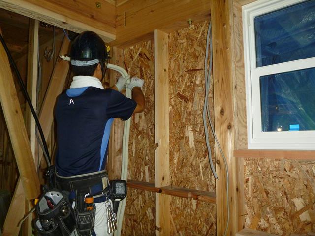 胴縁を打ち付け壁内に静止空気層を造っています!