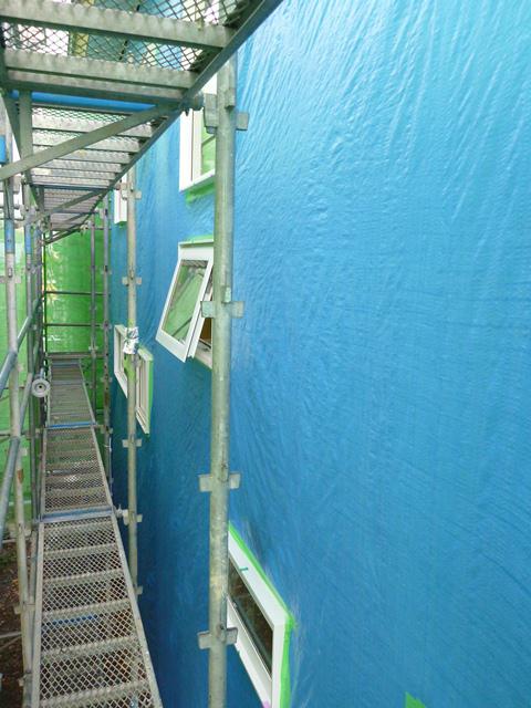 外壁の下地が完了し、シートにて養生しています!