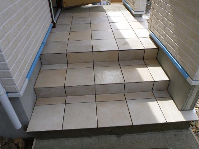 玄関ポーチのタイルも貼り始め、キレイに仕上がってきました。