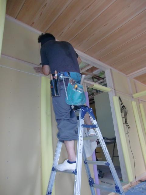 玄関ホールの天井ボード 張り始めています
