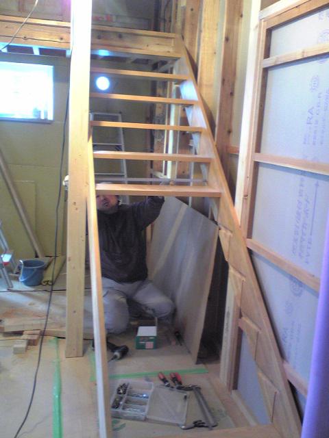 内部ではただいま階段の施工が行われております。