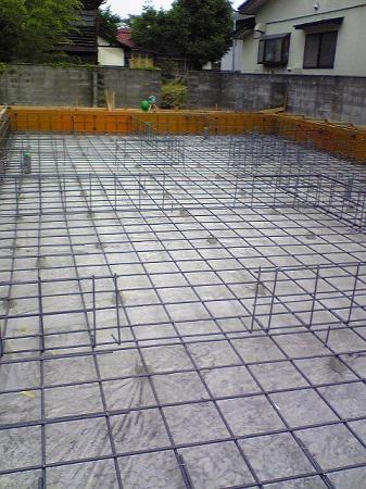 配筋が組まれ、第三者機関による配筋検査終了後、
