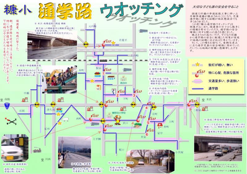 昨年度(2003)糠野目小学校PTAで取り組んだ通学路マップです。