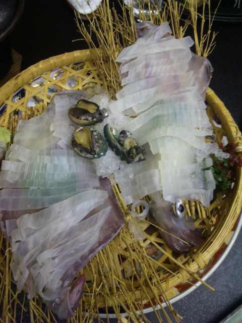 写真は芙蓉別館での“イカの活け造り”