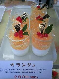 ブルガリアヨーグルトの白いムースの上にオレンジゼリーを流し