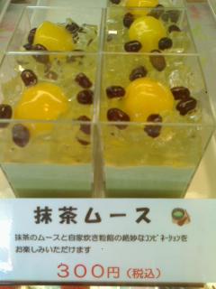 抹茶ゼリーを刻み栗、大納言を入れ仕上げてあります。