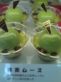 自家炊き粒餡の上に抹茶ムースと抹茶プリンをのせました。