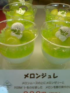 メロンムースの上にメロンゼリーとクリスタルゼリーをのせました